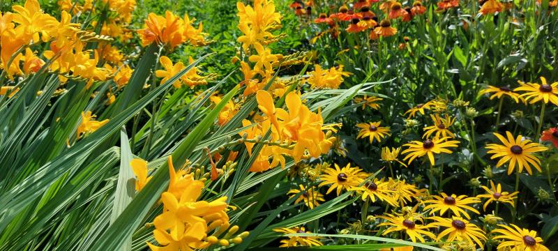 Ganz sicher eine Montbretie. ('Paul´s Best Yellow' oder 'Yellow Emberglow'?)