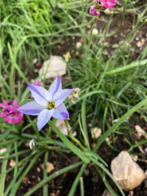 Hier blüht im Augenblick und zwar fast überall diese Glockenblume mit dem schrecklichen Namen poscharskyana