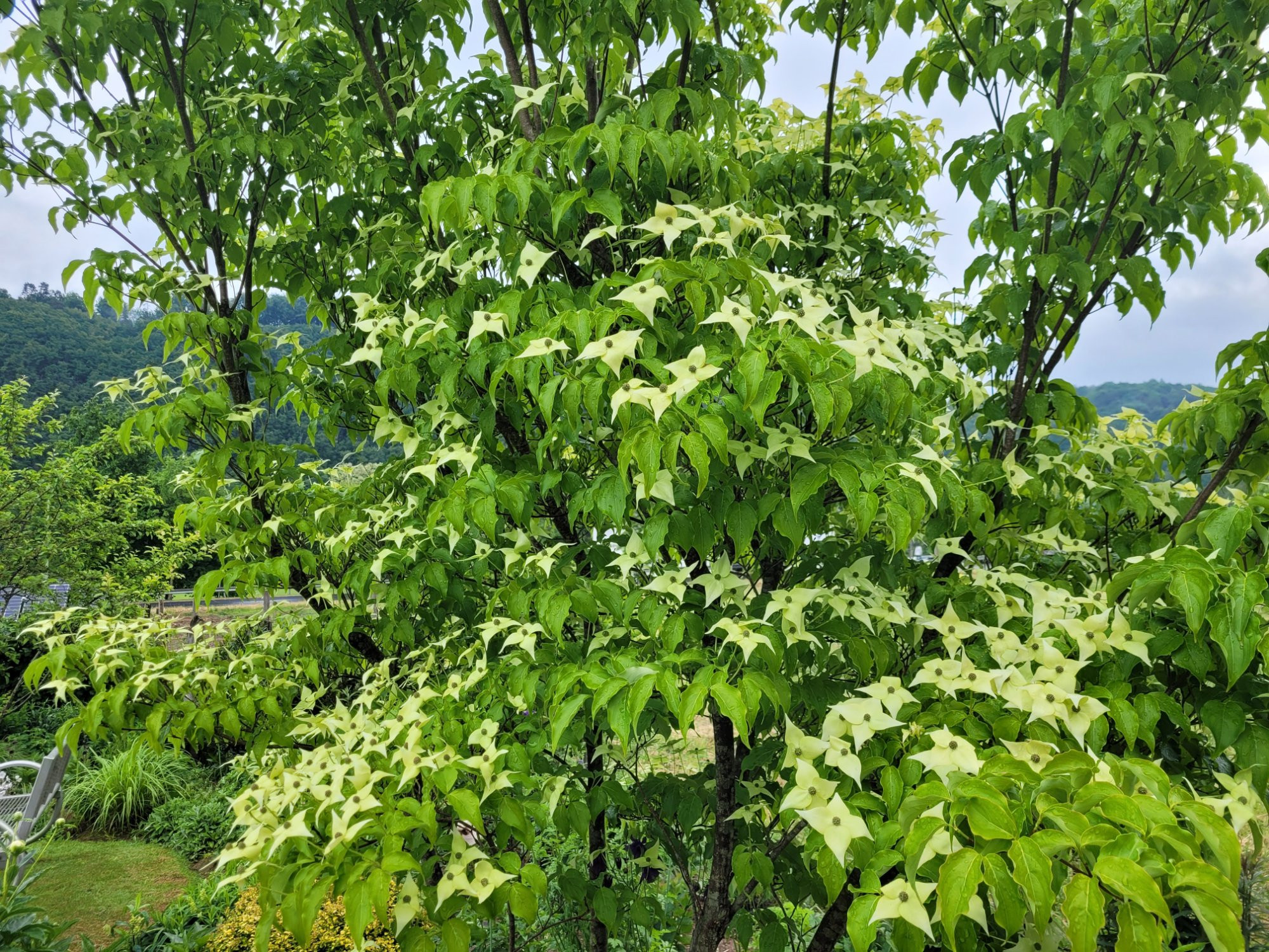 Meinen Cornus kousa 'Milky Way' habe ich auch wegen der nicht allzu großen, noch gut proportionierten Blüten ausgesucht.