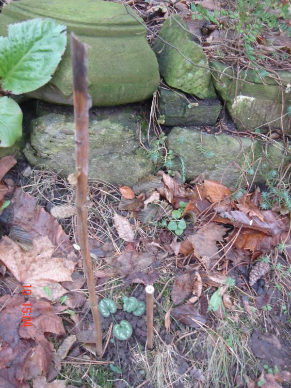 ThujaThujon, die Cyclymensämlinge ( und andere wie Hepatica - und Helleborussämlinge ) überlasse ich meistens ihrem Schicksal im Garten. Wenn Standortbedingungen nicht passen, verschwinden sie. Trittschutzstäbe sind in diesem Fall installiert, weil ich zunächst auf ein besonderes Cyclamen hoffte ( rohlfisianum und nicht coum, stellt sich aber immer mehr als coum heraus), aber mit Augengefährdung hast Du natürlich recht, die BG Gartenbau würde hier kein Auge zudrücken, darum demnächst Einsatz eines anderen Trittschutzes, siehe Anhang ( Schutz von ein paar vorwitzigen Wildtulpen im Rasen mit Zweigen )