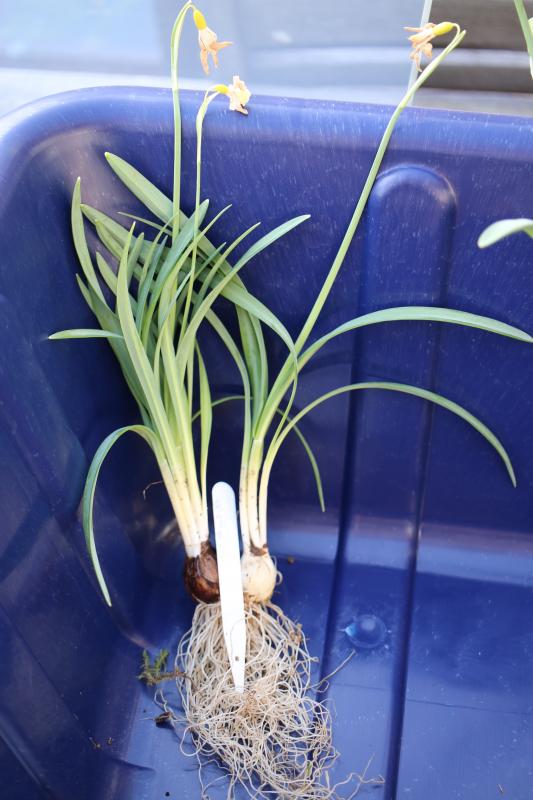 Eigentlich wollte ich das auch heute machen, muss aber erstmal zum nächsten Gartencenter fahren und neue Gittertöpfe kaufen. 'The Wizard' hatte sehr große Zwiebeln, die das Töpfchen komplett durchwurzelt und fast gesprengt haben.