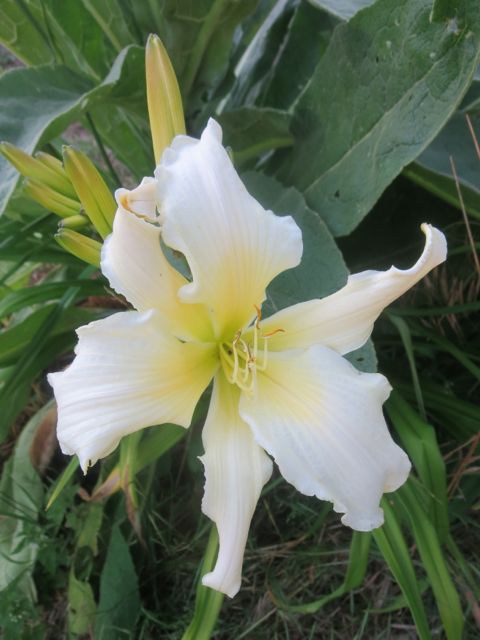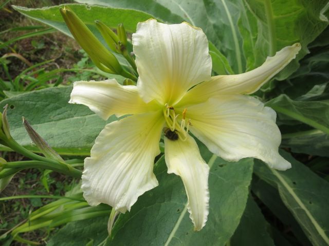 Das ist die gleiche Pflanze?Ein einst geliebter Sämling hat auch wieder geblüht, der Berleyer Holde Abendstern. Leider hat er sich disqualifiziert, weil er nicht jedes Jahr blüht und weil das Laub bei Trockenheit zu schnell gilbt.