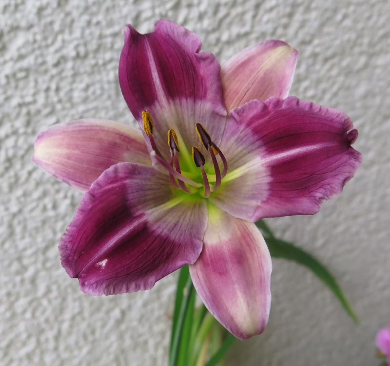 Ich muss euch unbedingt mal 'Blue Dolphin'zeigen.Es ist die allererste Blüte überhaupt,daher heute früh noch nicht so richtig gut.Aber ich freue mich schon seit gestern darauf und war ganz gespannt.Ich kann kaum glauben,dass er diploid ist,denn der Stängel(er hat ja erst einen dieses Jahr) ist sehr dick und stabil.