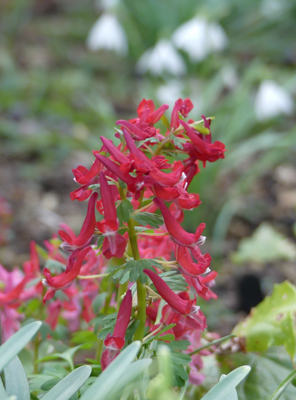Die letzten Seiten zeigen die Spanne der Farben bei Corydalis solida. In den vergangenen Jahren hatten wir hier schon verschiedentlich festgestellt, dass die rosa- und lachsfarbenen sowie roten Typen sich in den bei uns ursprünglichen trüb-lilafarbenen Beständen durchsetzen. In Grünanlagen und im eigenen Garten fallen mir außerdem zunehmend weitere Farbtöne auf, zum Beispiel dunkel-lilafarbene und blass-lila Typen mit schwachem, blauen Hauch. Seltene Pflanzen mit höherem Weißanteil dunkelten im Verlauf der Blüte oft nach.