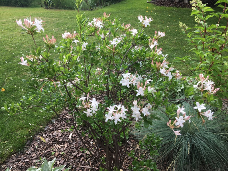 Ich habe Rhododendron viscosum 'Sommerduft' seit Jahren, der braucht bei mir nicht mehr Wasser als Rh. luteum. Steht ganz normal im Beet und bekommt keine Sonderbehandlung!