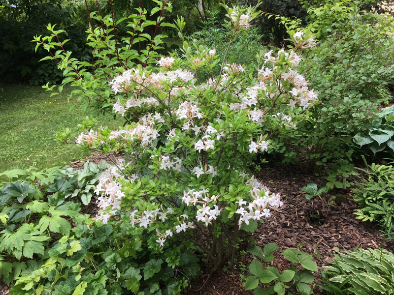 Für die Duftkomponente fällt mir noch Rhododendron 'Sommerduft' ein, blüht sehr spät und duftet gut.
