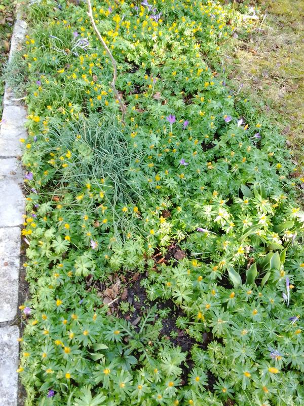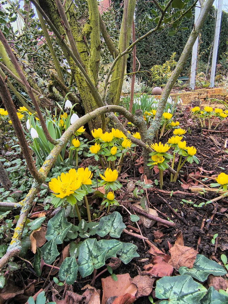 Die ersten Winterlinge, mitten im Winter,bei Dauerfrost.