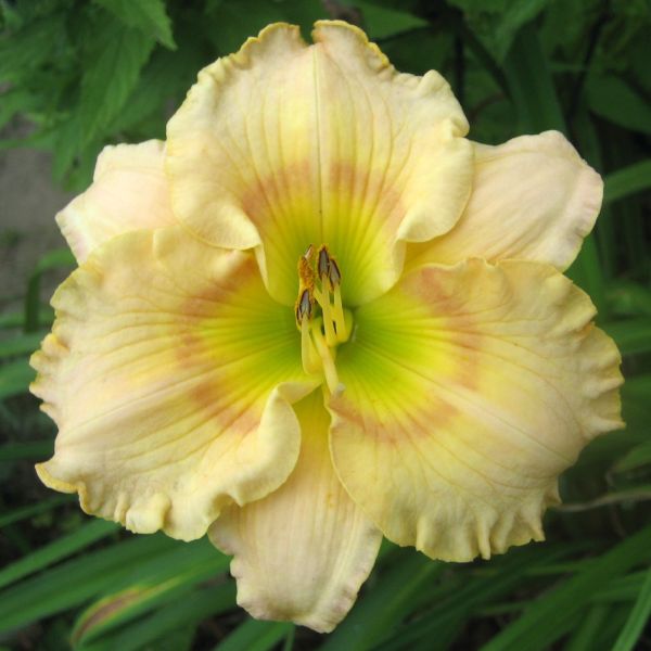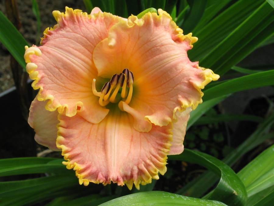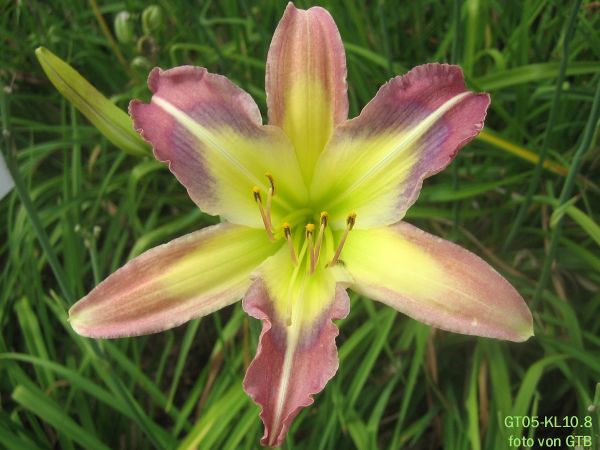weil es solchen Spaß macht, hier nochmal einen hübschen diploiden Sämling, etwa so groß wie H. Lavender Blue Baby aber nicht ganz so aufdringlich. LBB ist toll, aber manchmal, wenn sie mit 10 Blüten auf einmal blüht, erschlägt sie mich fast.