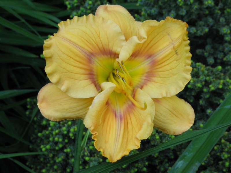 Hier gibt es eins (Bildreihe 5). Bei mir hat erst die sogenannte Amurtaglilie geblüht.Wißt ihr näheres über diese Sorte? Ob sie es überhaupt ist? Der Blütenstängel war nur so 25 cm. Gut, sie muss sich wohl auch erst etablieren.A Babbling Baboon's Bouncing Babies,(McDonald 2003), leider kein Bild zu finden