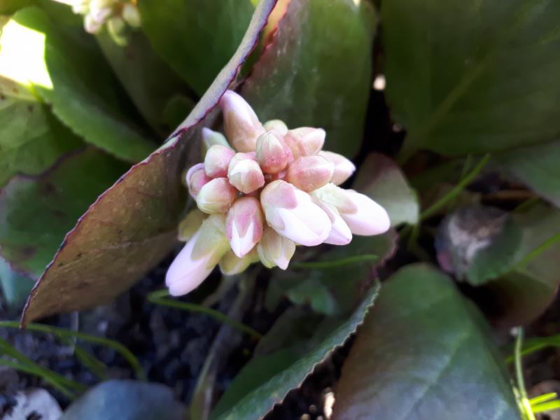 Hier ist die Bergenienblüte die absolut sichere Vorhersage für Spätfröste. Die Bergenien schieben die Knospen, für nächste Woche ist Frost angekündigt.
