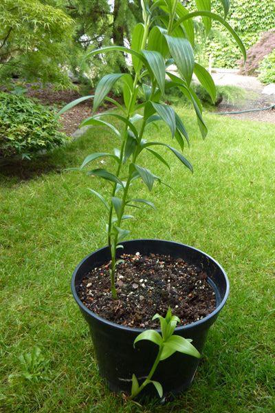 eine nepalenserin auf abwegen!habe letzten herbst 3 zwiebeln von lilium nepalense in diesen topf gepflanzt. vor ca 3 wochen trieben 2 davon aus, dann längere zeit nichts. jetzt auf einmal kroch die dritte zwiebel zum abzugsloch raus.da sieht man wie die nepalense unterirdisch wandert.stick