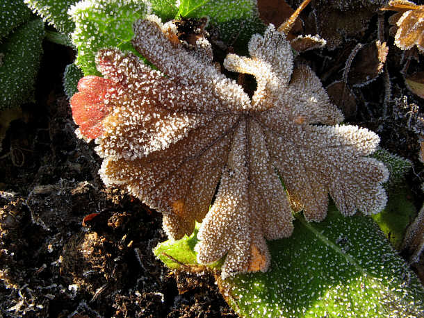 Heuchera Blatt im Rauhreif, gestern früh entdeckt.Fuliro
