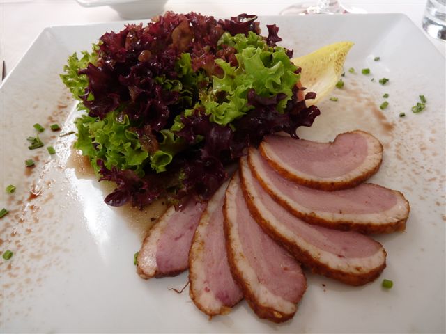 Den sonnigen Tag habe ich für einen Ausflug genutzt, bestellt habe ich, geräucherte Entenbrust mit Salat