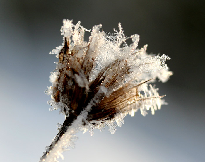 Fruchtstand von Herbstanemone im Kälteschock