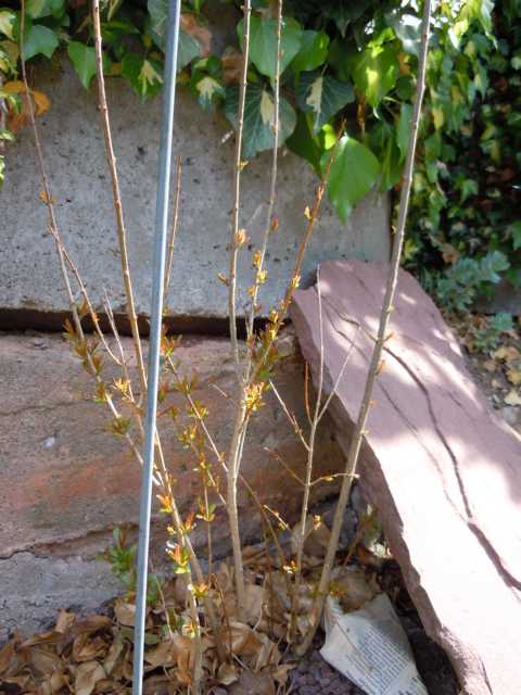 Heute morgen habe ich entdeckt, dass meine kleine Stachyurus praecox von ganz unten austreibt.