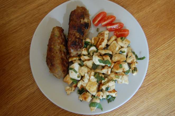 , leider nicht solch schmackhafte, wie ihr.Daraus wurde dieses: Hackfleischröllchen (mit Pepperoni und Lauch) mit Bovistwürfelchen.PS: leider etwas unscharf