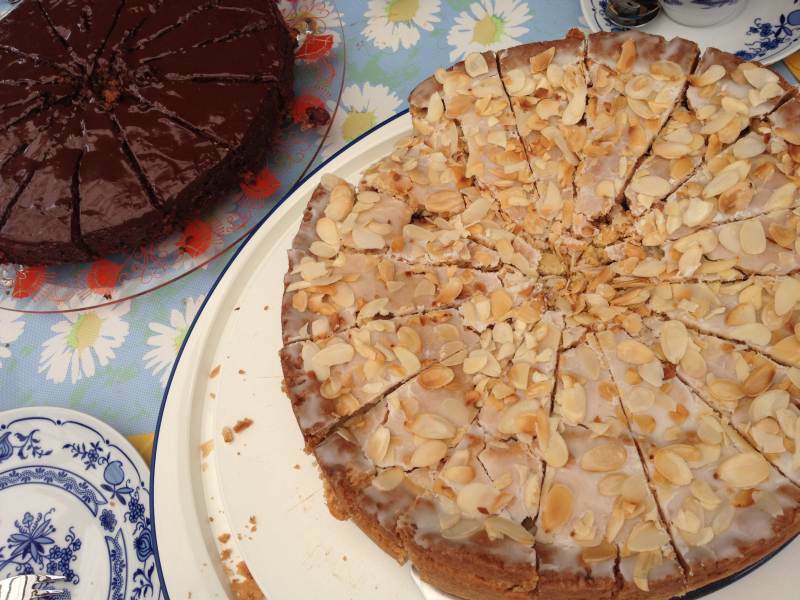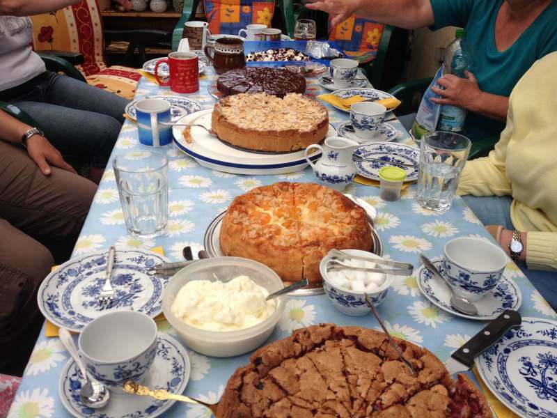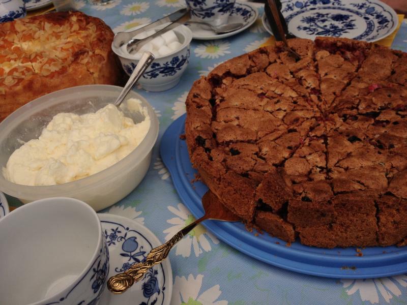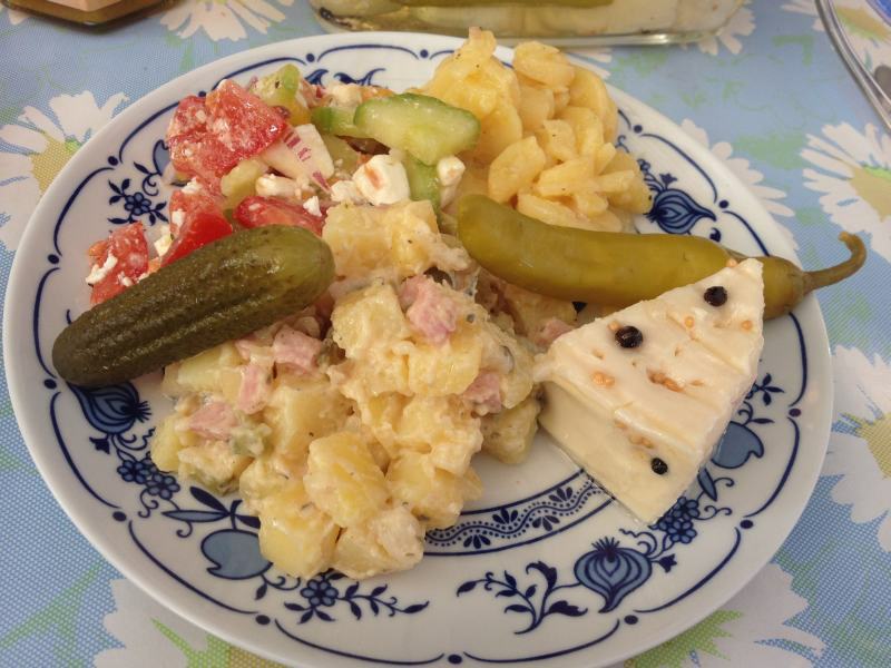 nach einem heftigen regenband haben wir garten geguckt und irgendwann gab es dann jede menge leckere kartoffel- und gemüsesalate, eingelegten käse...
