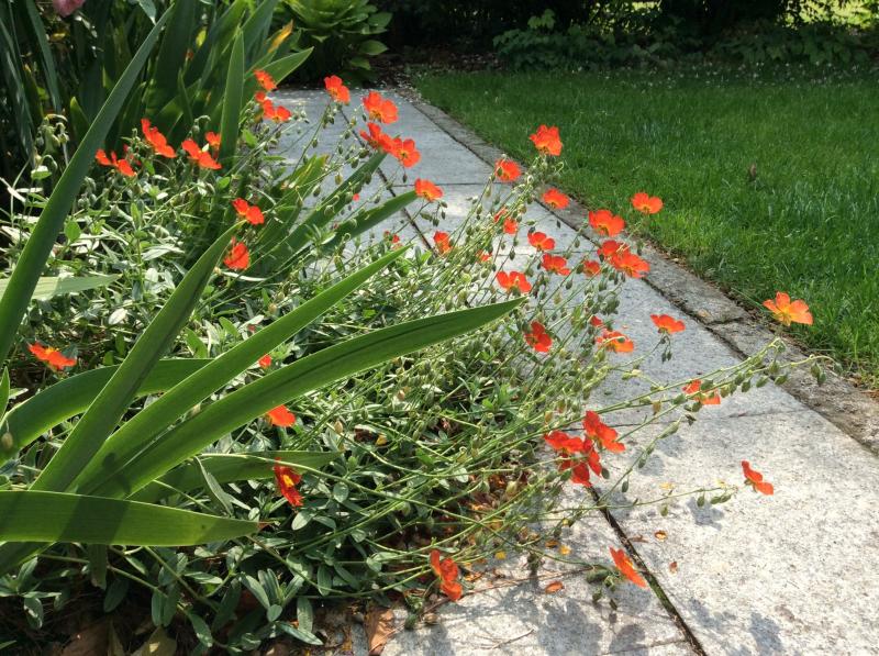 Etwas älteres Henfield Brilliant, aber deutlich jünger als das gezeigte Ben Heckla. Jedes Jahr nach der Blüte penibel zurückgeschnitten, trotzdem verkahlt es von der Mitte her zunehmend. Bei solchen Helianthemum sollte man rechtzeitig Ersatz heranziehen, denn ein starker Rückschnitt bringt es i.d.R. um.
