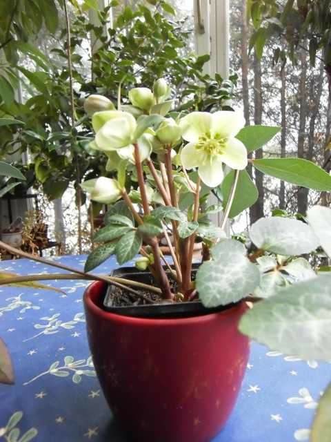 Das ist einer meiner beiden selbstgekreuzten H.ballardiae (H.niger x H.lividus). Die Mutter (H. niger) hatte marmorierte Blätter, daher ist die Marmorierung auch bei den Nachkommen sehr ausgeprägt. Bezüglich der Winterhärte bin ich etwas skeptisch, daher halte sie derzeit noch im Wintergarten.