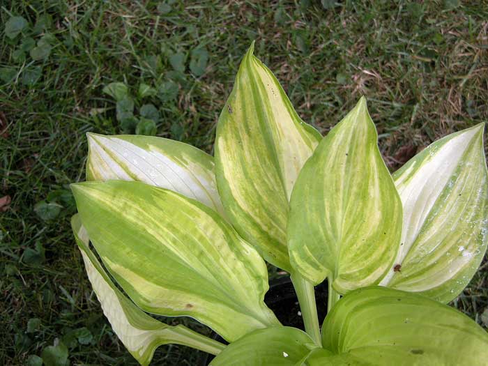 Dieses Teilstück meiner Hosta Francée wurde mit einem Spaten von der Mutterpflanze brutal abgehackt