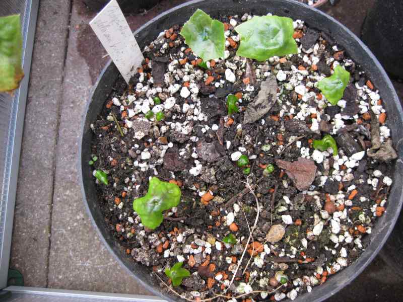 D. (oder P.) versipelle hat es überstanden. Der Austrieb sieht witzig aus. 'Spotty Dotty' treibt auch sehr schön.Die Samen aus dem Äpfelchen von P. hexandrum habe ich zwar knorbsmäßig behandelt und gesät, zu sehen ist leider noch nix.