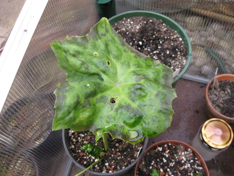 kann erst 2 zeigen...podophyllum pleianthum aus samen gezogen. die gehen heuer ins 3. veg.-jahr (aussaat 2008). zum vergleich der größe...die pötte sind 10-er hochcontainer (17 cm hoch). ideal für die podos. dann noch einer, der eigentlich delavayi sein soll, aber nicht ist. ich bin mir noch nicht sicher...könnte sich zu einem panaschierten versipelle entwickeln oder zu sowas (3. foto), das ich mal im garten eines bekannten fotografiert hatte + auch noch nicht bestimmen konnte.Ich will Bilder sehen!