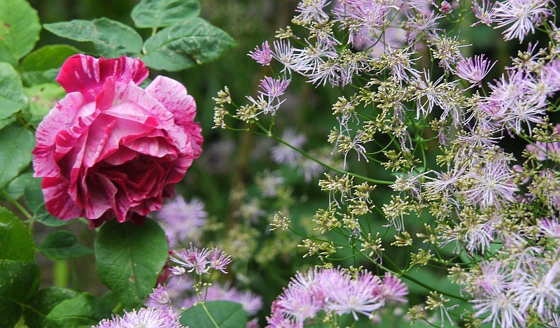 dafür hat sich durch die runterhängenden zweige eine nette kombination ergeben: ferdinand mit thalictrum aquilefolium.