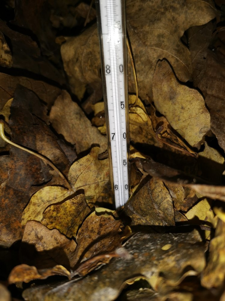 Ich hätte nicht gedacht, dass sich ein Laubhaufen mit etwas Grasschnitt so sehr erwärmen kann. Kannst du kurz schreiben, wie groß er etwa ist und wie du dafür sorgst, dass er nicht vom Wind auseinandergepustet wird?