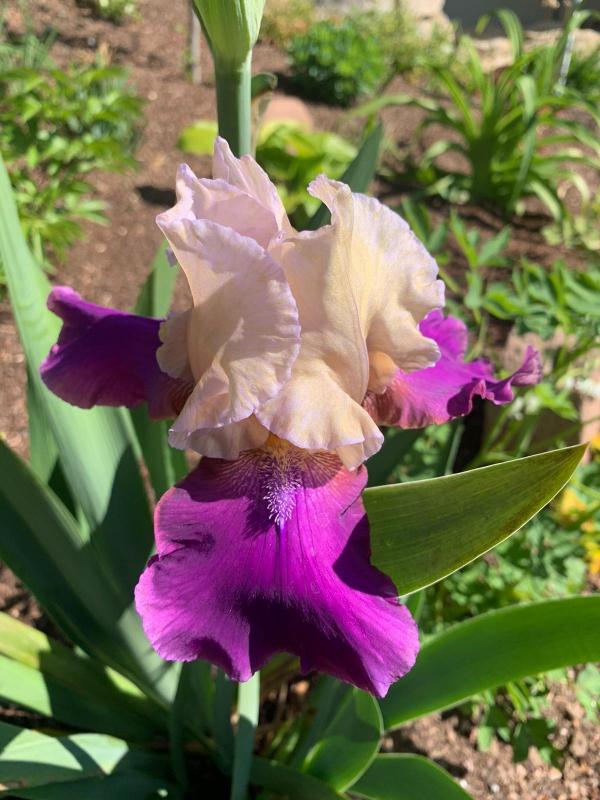 Die Farbe kommen zwar etwas grell auf dem Foto, aber es müsste sich um Chapeau handeln. http://wiki.irises.org/TbAthruE/TbChapeau