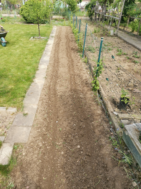 Diese hier wurde unmittelbar vor dem säen gelockert, und auch wieder angewalzt, mit der 10kg Nockenwalze. Man sieht an den Rissen, die ist etwas zu leicht.