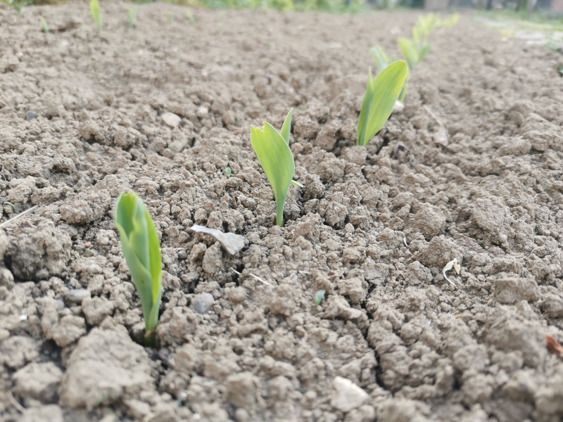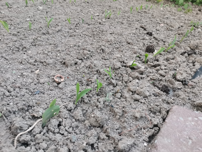 Der Mais macht sich. Bisschen dicht, mal abwarten.