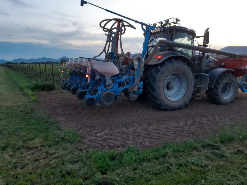 Es war lange kühl aber mit rund 10 Tagen Verspätung konnte am 2. Mai endlich Mais gesät werden.