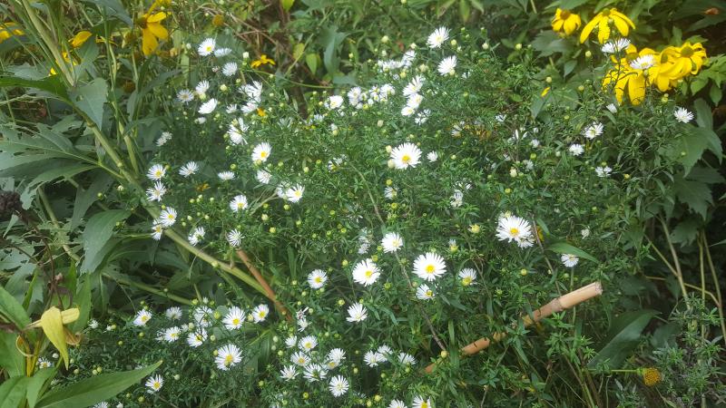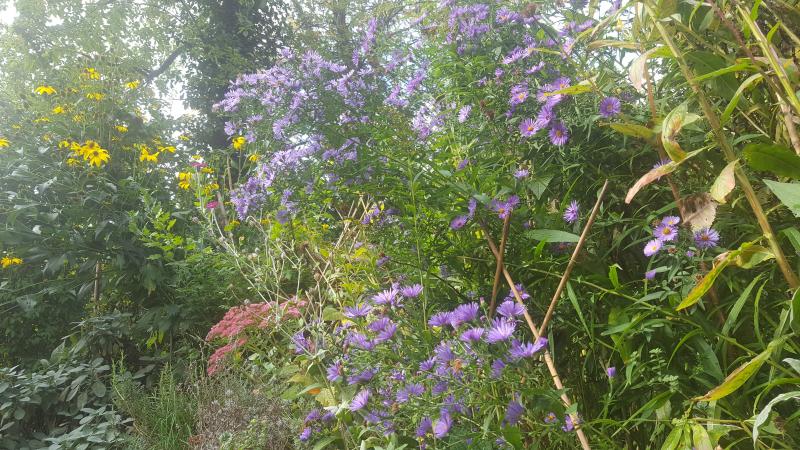 Bei den Blühstauden beherrschen Astern die Szene - diese stand bei Gartenübernahme vor mehr als 30 Jahren bereits hier, zB A. na " Weißes