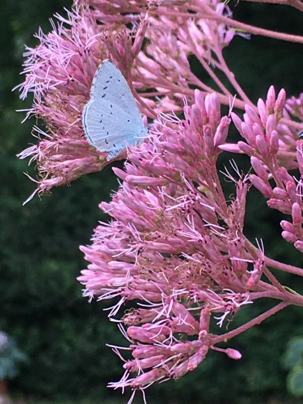 Celastrina argiolus flogen hier eine zeitlang drei Stück miteinander, er nutzt sehr viele Raupenfutterpflanzen u. a.