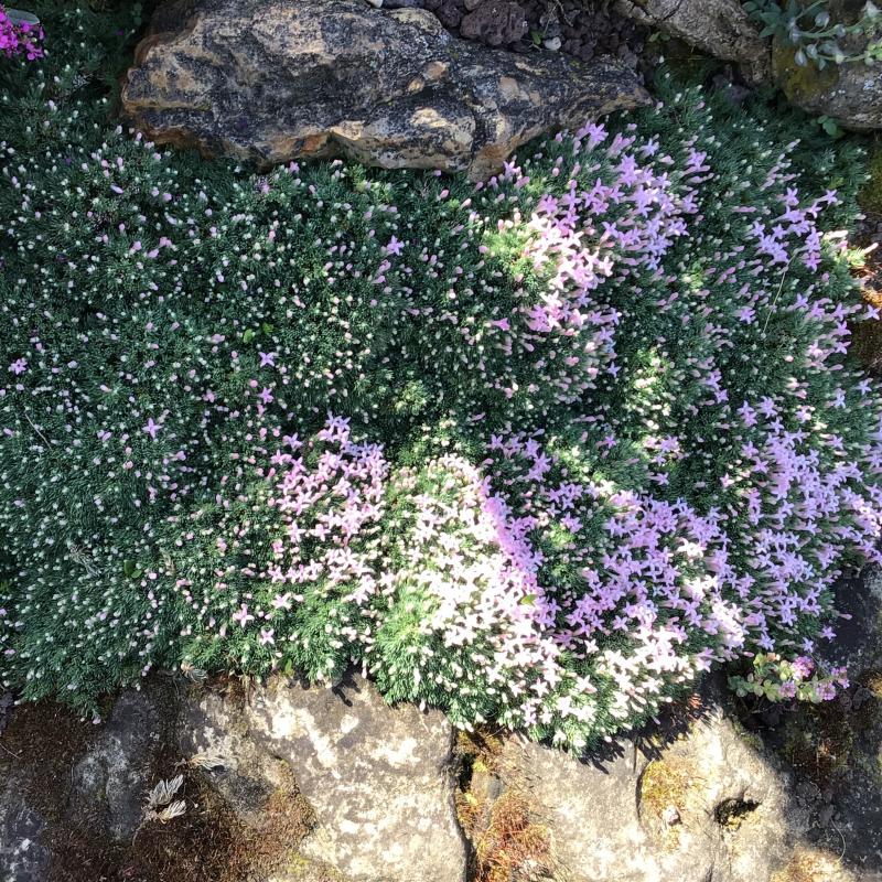 Ich möchte noch eine von meinen alpinen Hätschelstauden zeigen eine Asperula sie beginnt gerade zu blühen Bei der Art bin ich mir nicht so sicher vielleicht sintenisii? Das Polster ist sehr flach 3cm. Die Blüten einzeln auf dem Polster sitzend.