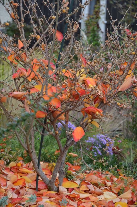 Von meiner ist heute auch gerade das letzte Blatt abgefallen. Immerhin liegen sie noch dekorativ auf der Baumscheibe, bisher gab es ja noch keinen Herbststurm. Für ein Foto war das Wetter leider zu schlecht.