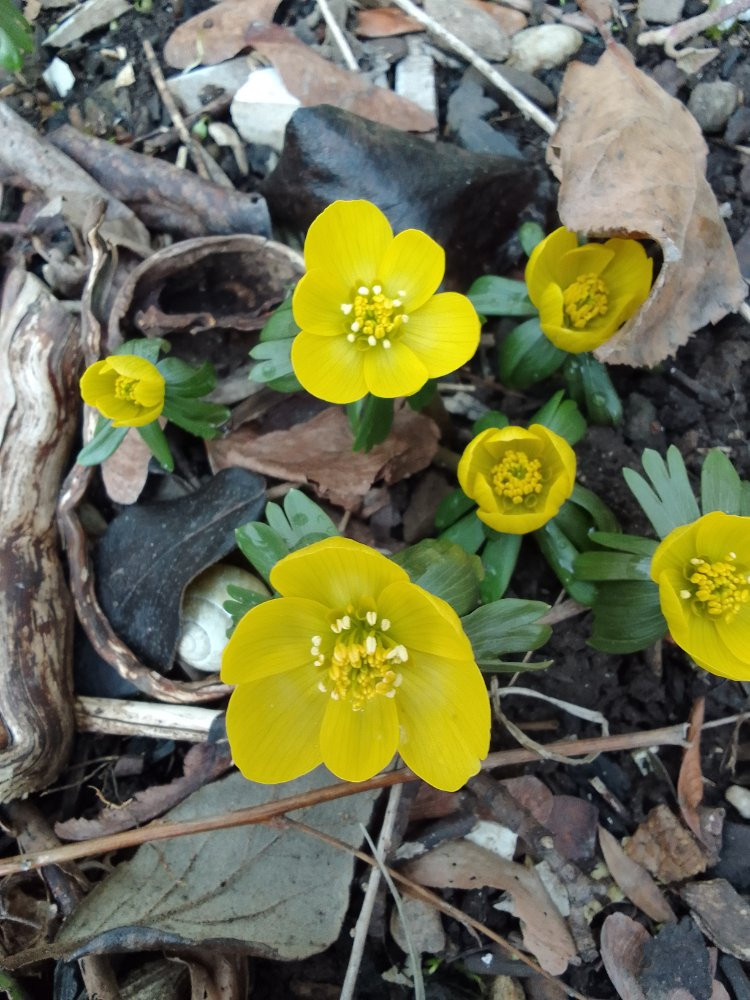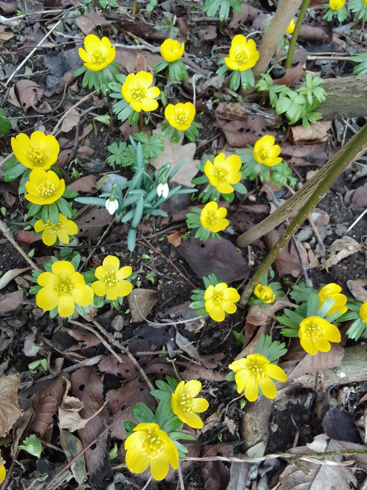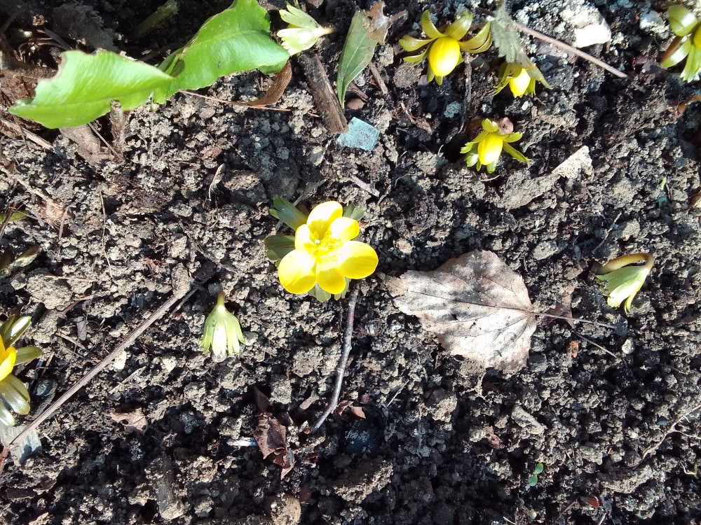 Eranthis hyemalis bei Sonnenschein und 3°C.