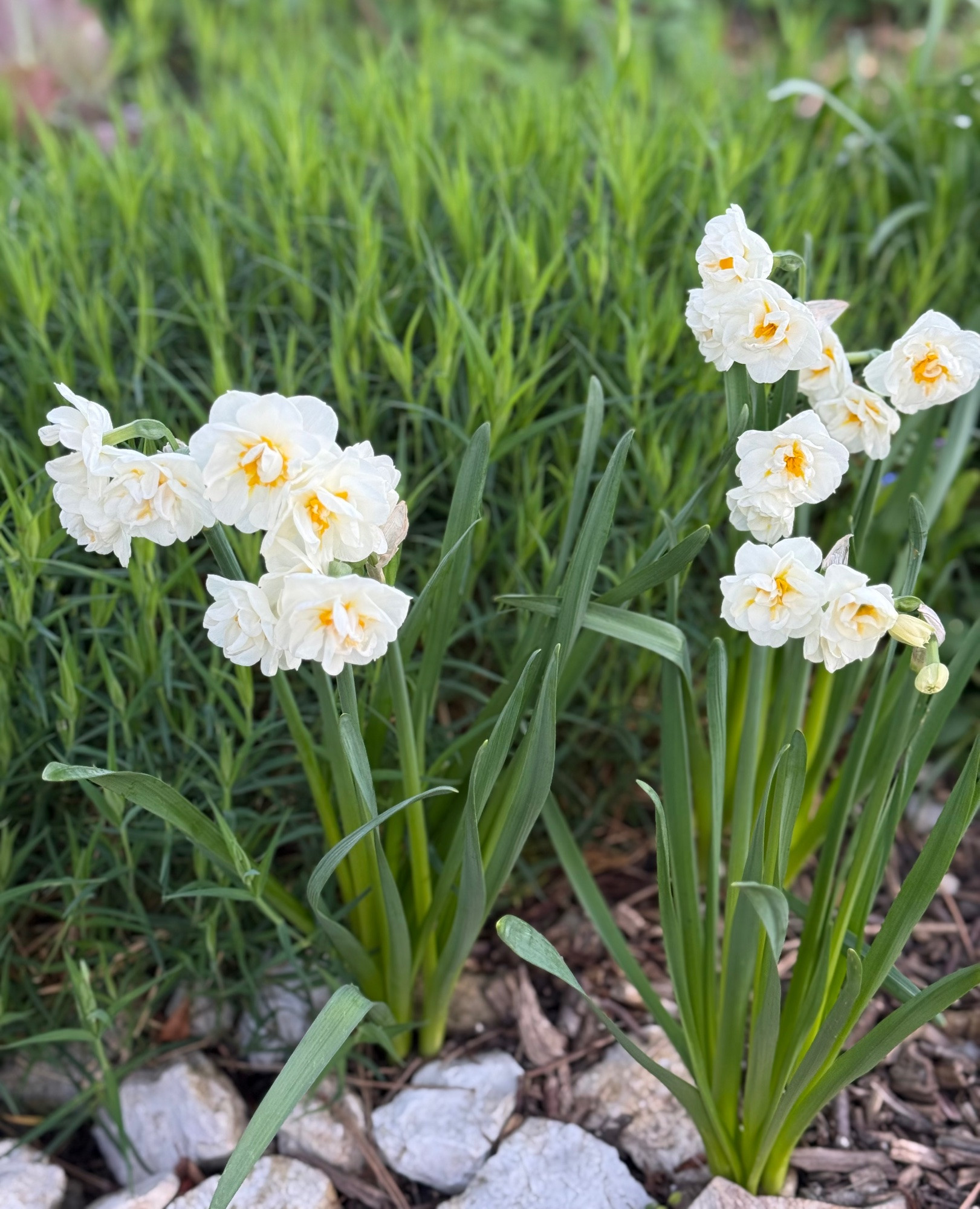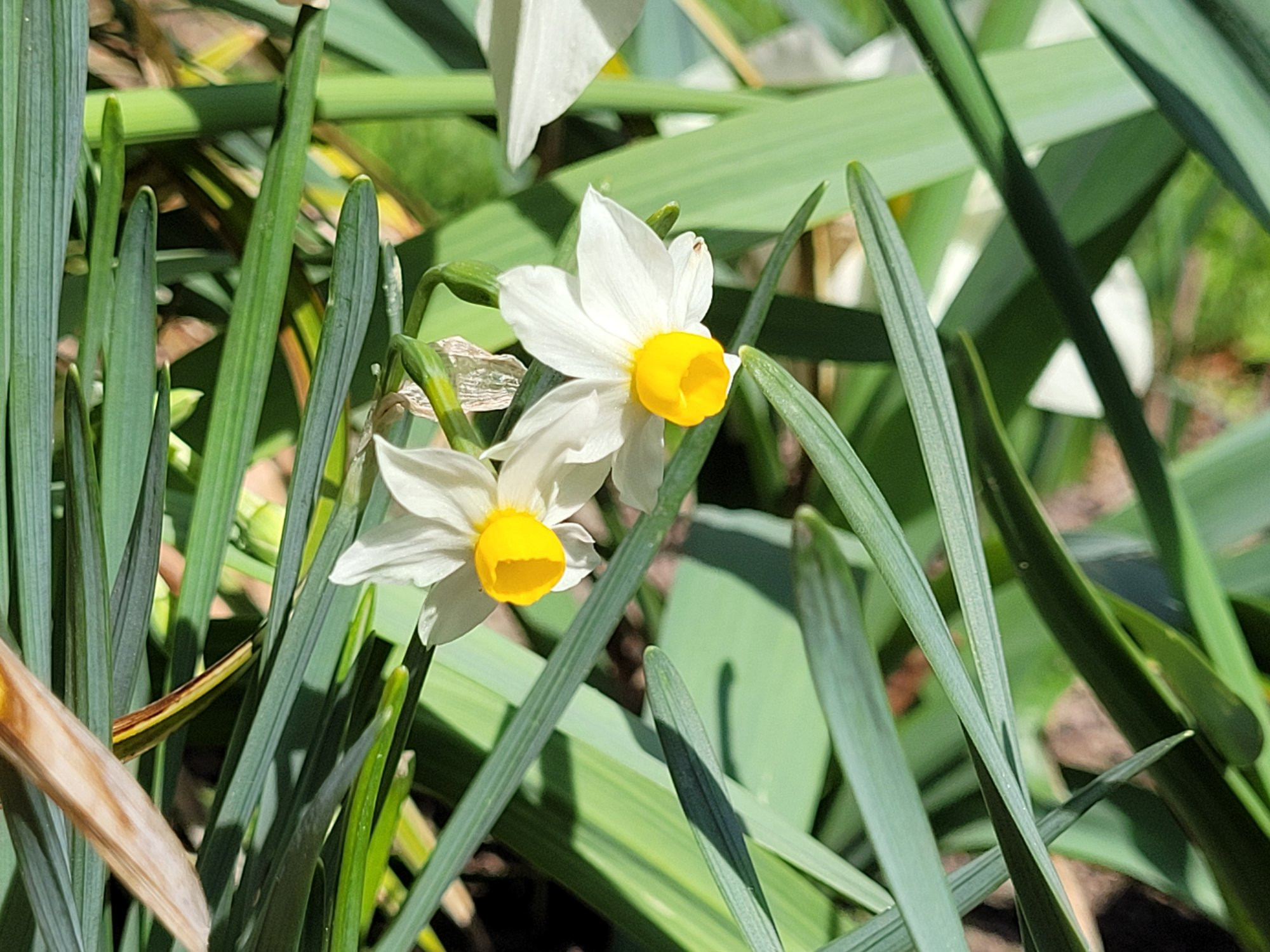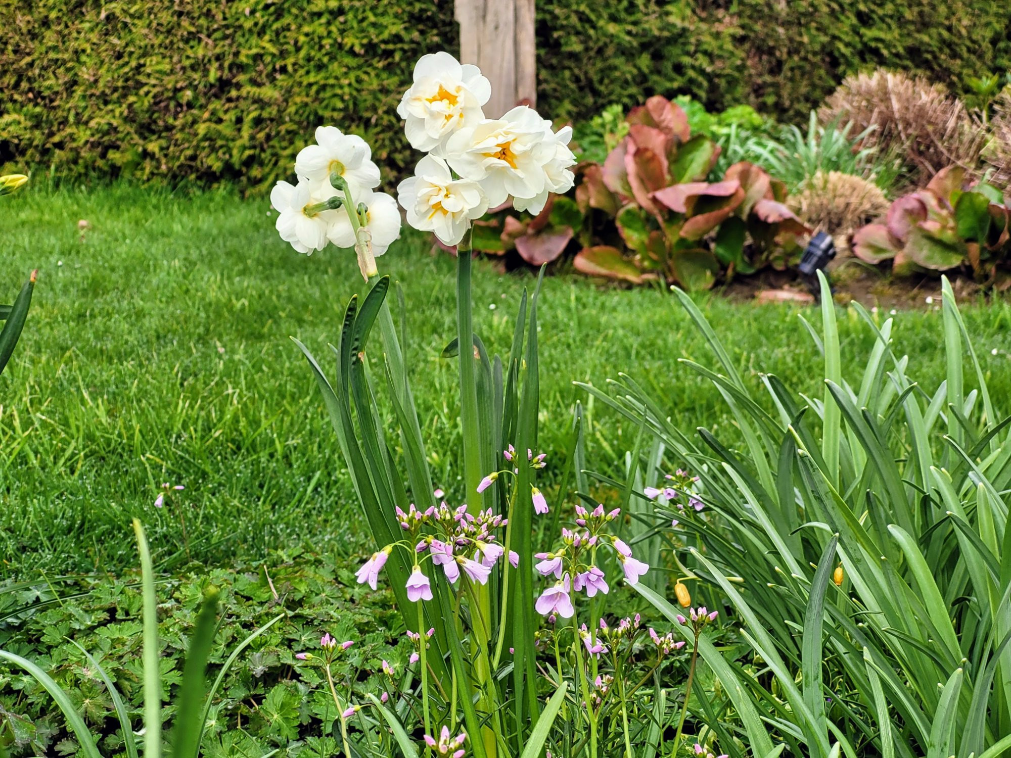 Ich mag die jetzt erst blühenden, hellen Narzissen fast noch lieber. Allerdings sind sie hier tatsächlich nicht besonders wüchsig. Besagte Thalia hält sich zwar ganz gut, vermehrt sich aber auch nicht sonderlich. Es gibt bisher immer nur ein bis zwei Stängel, aber es wird kein Horst. Ich hatte mal eine ganze Menge davon ins Präriebeet gesetzt, wo sie sich zwar wacker hält aber kaum Wirkung entfaltet.
