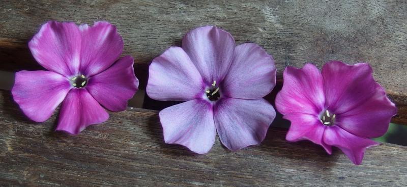 Diese Blüten (links und rechts junge Blüten; Mitte reife Blüte) stammen von einem Sämling aus ´David´(P. paniculata). Die Pflanze wurde leider vom Waschbären "gestutzt".