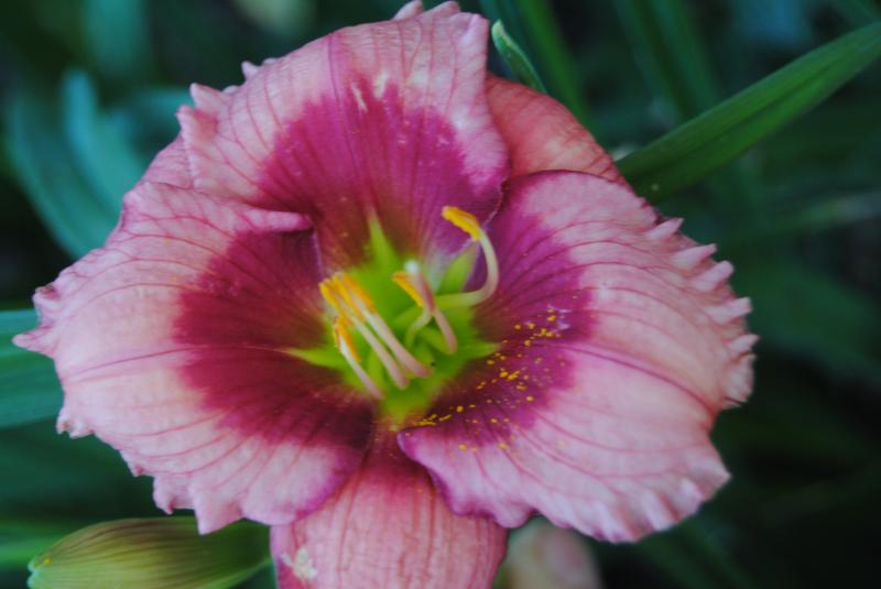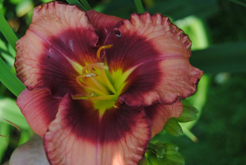 auf dem schild steht Strawberry Candy meine 1. taglilie die getopft blüht