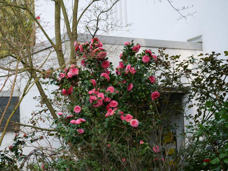 Ja, auf meinen 550qm stehen doch inzwischen eine ganze Menge Kamelien... ;D Und mit welch Blütenreichtum schmückt sich deine alte Kameliendame! Klar, Blüten bekommen Sonnenbrand, wenn's ihnen zuu sonnig ist, aber den reichen Blütenansatz hat der kleine Baum eben gerade durch den sonnigen Standort. :) Mein Professore Filippo Parlatore trödelt auch, scheint eine späte Sorte zu sein.