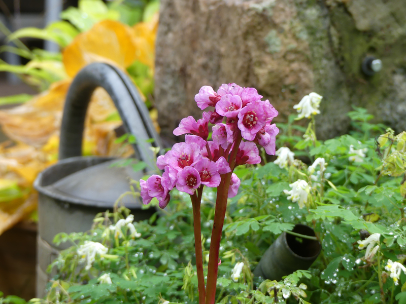 Rudbeckia triloba - Fuchsia regia subsp. reitzii - Bergenia cv. (?'Doppelgänger'?)