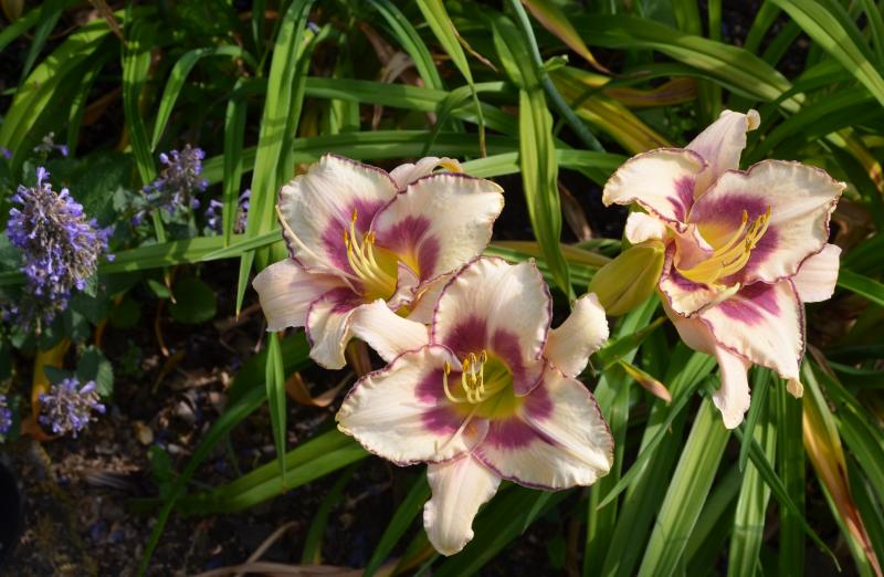 noch ein paar fotos,Texas beautiful bouquet, noch ein versuch, vielleicht sieht man das polychrome auf dem photo besser. die farben sind im original strahlender, mittig leuchtendes grün, die substanz der blüten großartig. sie beginnen schon am vorabend aufzublühen und schauen nach einem tag mit 36 grad am abend immer noch hervorragend aus, die blütenform hat etwas eigenartig "plastisches", ganz anders als alle übrigen die ich habe. ich bin sehr begeistert. ( und das war auch noch eine bonuspflanze...) . sorten wie web of intrigue, big blue etc sind schon mittags zu mus verkocht...