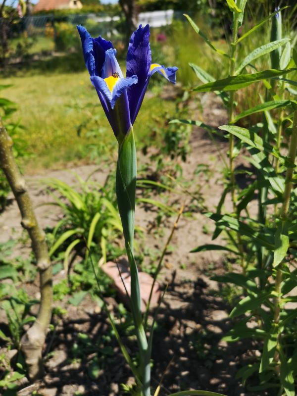 Ich kenne die als "Holländische Iris" oder eine sehr ähnliche Art. Man bekommt sie als Zwiebel im Herbst oder im Frühling, aber oft treibt sie jahrelang nur zwei dünne, unscheinbare Blätter, bis sie wieder genug Kraft für eine Blüte getankt hat. Meine sind hier allerdings schon seit zwei oder drei Wochen "durch".