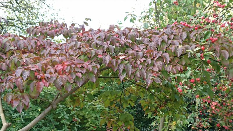 Cornus "Satomi" ist noch nicht voll ausgefärbt, zeigt aber schon was er kann.