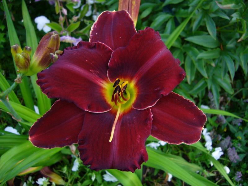 Hach, da sind ja wieder schöne Taglilien und Fotos dabei, - wunderbar! :DHier ist gerade "Land unter" und ich fragte mich schon, ob ich wohl die Ankündigung einer Sonnenfinsternis über Deutschland für den heutigen Abend in den Nachrichten verpasst habe, aber nein, es sind bloß die Gewitter, die sich regenreich entladen... da würde mich gerade echt mal interessieren, wieviel Liter wohl auf den Quadratmeter gekommen sind bzw. gerade noch strömen. Kann man das irgendwo nachgucken (ich hab keinen Regenmesser im Garten)?Jedenfalls gab es heute Morgen wieder ein paar nette Blüten; die meisten Sorten habe ich allerdings schon in den letzten Tagen gezeigt. Neu, für mich erstmals blühend und in erster Einschätzung soweit ganz nett war Blue Hippo (Lambertson 2005)
