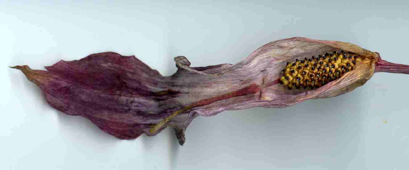 habe heute die die spatha der blühenden sikokianum überprüft. also die sikos mit aufgeweiteter spatha (im foto rechts) sind männlich, der siko mit der schmalen spatha (im foto links) ist weiblich. man kann auch ohne aufschlitzen durch vorsichtiges auseinander ziehen der spatha einen blick ins innere werfen. weibliche exemplare haben so kleine spitze "tönnchen" rund um die spadix (fällt jetzt keine bessere beschreibung ein