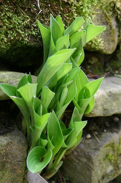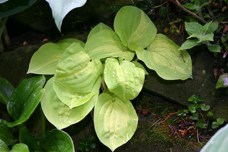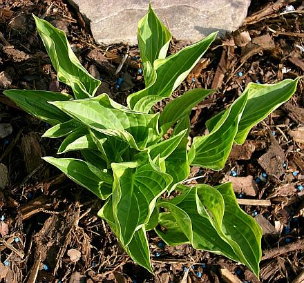 Und hier meine vorerst letzte Errungenschaft, an der ich im Baumarkt nicht vorbeigehen konnte - Hosta Hybride 'Color Glory'. Sie ist (wie man sieht) extrem sonnenempfindlich. Die Blüte soll fast weiß sein.