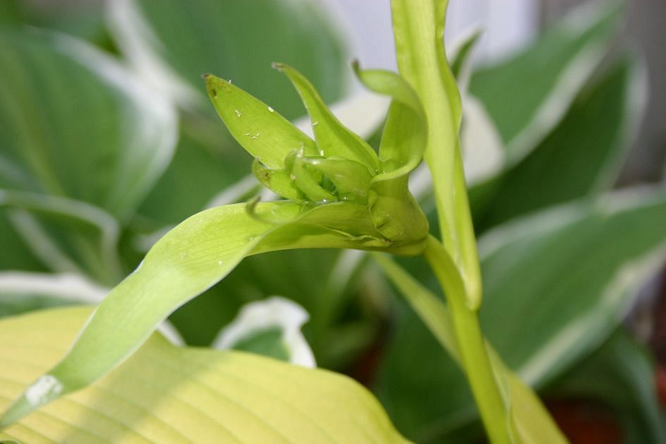 ...und Platz 2 beim Blüten rausschieben geht an :Hosta 'Snowy Lake ,ein Mini aus H. 'Veronica Lake'.