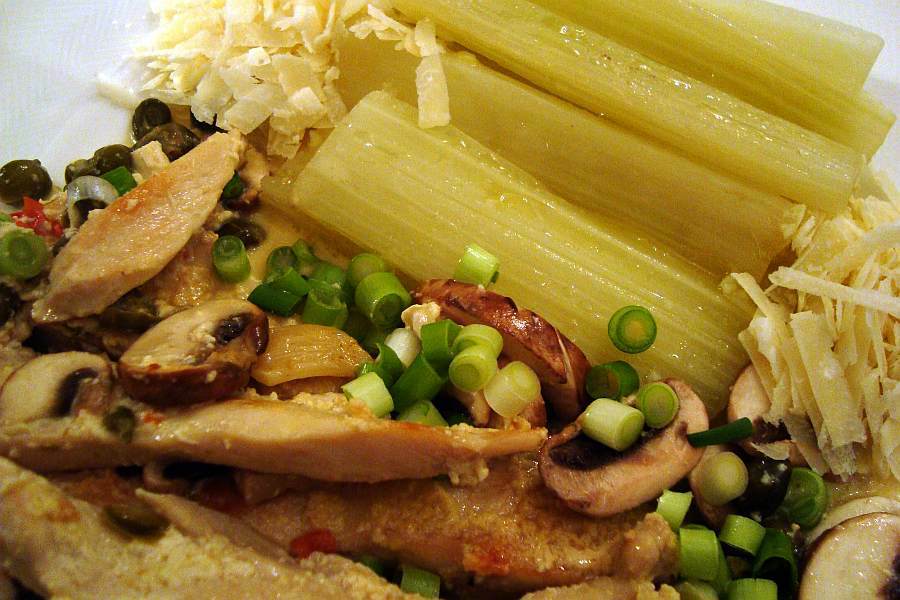 [/size]dazu hühnerbrustgeschnetzeltes mit sahne, kapern, champignons, frühlingszwiebeln